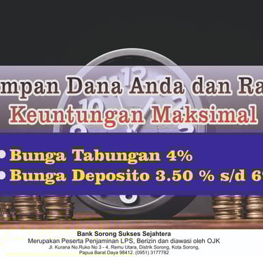 Deposito Di BPR Sorong Sukses Sejahtera .sampai Dengen 6% .