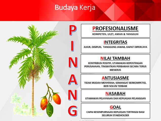 Dalam menjalankan peran sebagai Bank Perekonomian Rakyat, Sorong Sukses Sejahtera menerapkan budaya kerja yang selaras dengan budaya orang Papua, yaitu PINANG: Profesionalisme, Integritas, Nilai Tambah, Antusiasme, Nasabah, dan Goal.